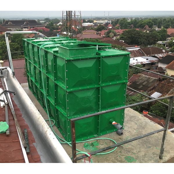 Kami memproduksi tanki panel fiberglass ( rooftank ) dengan sistem knockdown yang mudah dipasang dan dirakit meskipun dengan kapasitas besar, sehingga untuk kapasitas besar meskipun berada di atas gedung bertingkat tidak perlu repot untuk menaikkanya karena bisa dipasang dan dirakit diatas gedung. Kami bisa memproduksi tanki panel dari kapasitas 1.000 liter ( 1 ton) - 200.000 liter ( 200 ton) dengan kualitas terjamin garansi 5 - 10 tahun dan dikerjakan oleh tenaga yang ahli dibidangnya, dimensi dan warna tangki dapat disesuaikan menurut permintaan customers. Tangki panel fiberglass kami dilengkapi support besi galvanis untuk bagian interior yang tahan korosi terhadap air meskipun dalam jangka waktu yang sangat lama, selain itu membuat tangki semakin kokoh dan kuat. Rooftank kami juga dilengkapi aksesoris tangki seperti mainhole, ventilasi udara, palep pengurasan, tangga, dll.